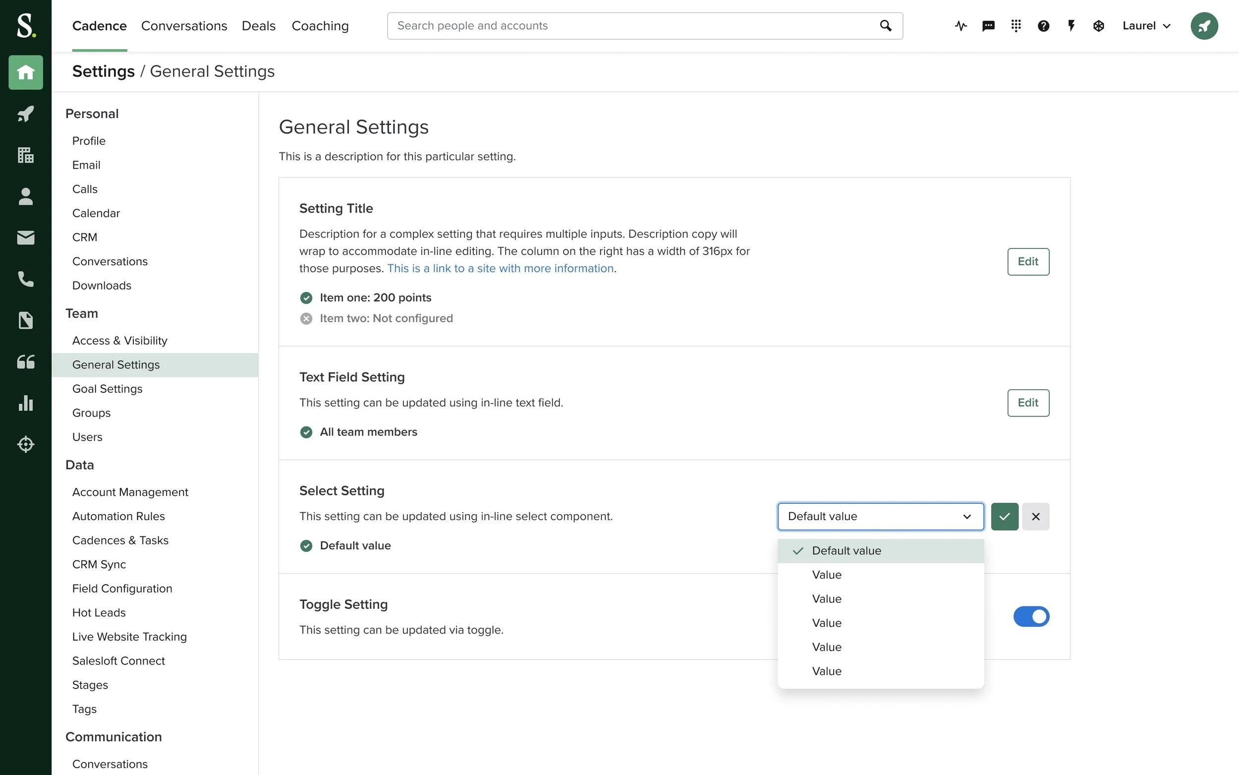 Salesloft is a very fast-growing revenue orchestration platform. User configurations and settings accompany the countless features shipped out to users each week. Most often, much time is spent on getting these features into tip-top shape with little thought given to their settings.