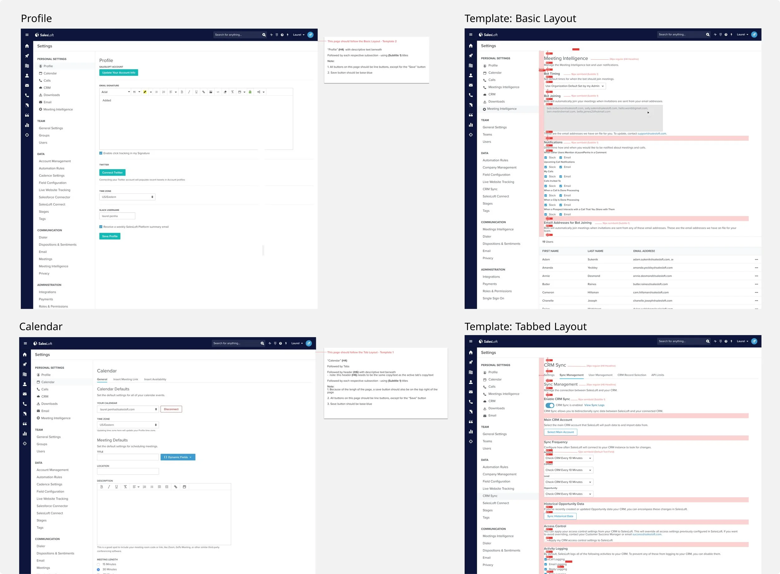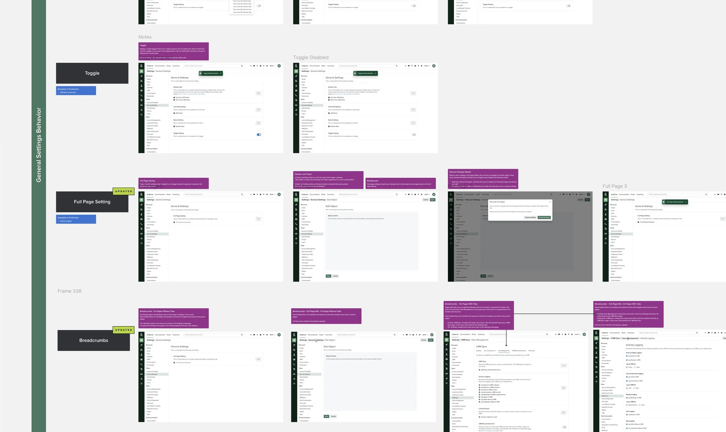 Engineering had a goal to update the tech stack by deprecating Angular and implementing React. I viewed this as a perfect opportunity to kick off the component creation work across my CRM teams. So that’s where we started - CRM Admin, CRM User, and CRM Sync settings page. My team did not have a dedicated UI Engineer at the time so I worked with a new junior designer on this as their capstone project for promotion. Across the Settings Squad, each designer also started to work with their team to do the same after my UI engineer and I completed the first few pages.